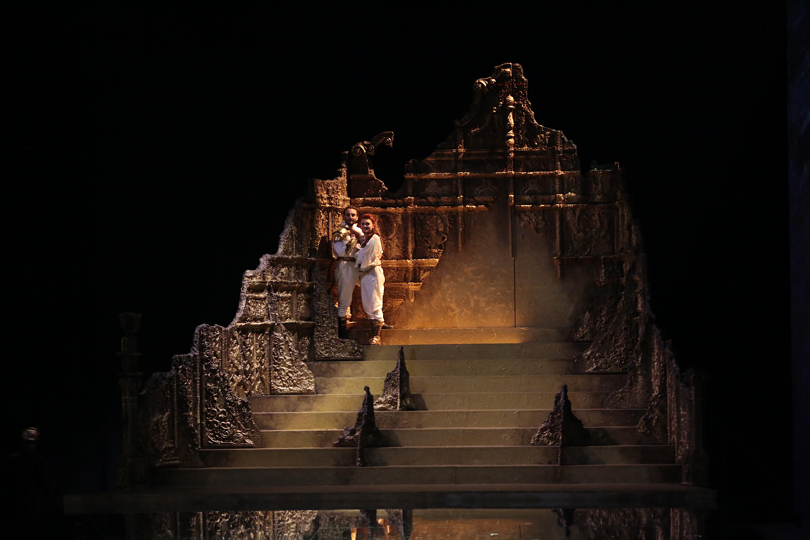 Nulla che aiuti a dipanare la trama, già arruffata di suo. Nulla che la spieghi chiaramente, anche se nel capolavoro ultimo di Mozart la semplicità è solo illusoria. Probabilmente su questa linea – quella dell’illusoria semplicità – si collocano anche Massazza e Bedogni. Illusorio pensare di “decrittare”, ad esempio, il gigantesco teschio (orribilmente, con un po’ di capelli ancora attaccati sulla sommità) che ruotando con effetto 3D sullo schermo accompagna alla fine del primo atto Tamino e Pamina all’interno del Tempio della Prova. Il coro canta queste parole: “Quando virtù e giustizia / Cospargono di gloria il grande cammino / Allora la terra è un regno celeste / E i mortali eguagliano gli dèi”.